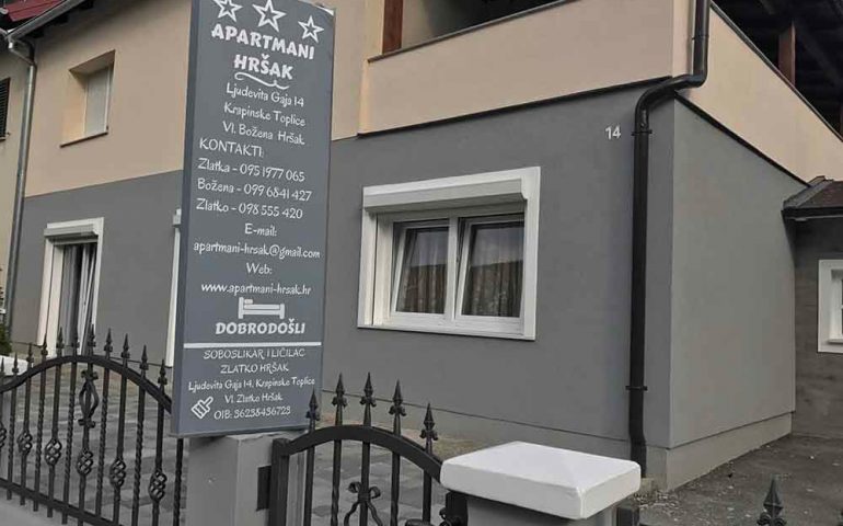 Smještaj u apartmanima Hršak Krapinske toplice za Vas nudi dva istovjetno namještena i opremljena apartmana. Smještaj u centru Krapinskih toplica je poseban po tome što se koristi hipertermalna mineralna voda u kućanstvima, ista koju koristi i Specijalna bolnica za medicinsku rehabilitaciju, Specijalna bolnica za kardiovaskularnu kirurgiju i kardiologiju “Magdalena”, Specijalna bolnica za ortopediju i traumatologiju “Akromion” te Vodeni Park Aquae Vivae.